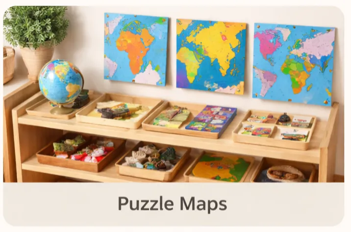 Turn the world into something graspable: Puzzle maps give names and shape to large, abstract spaces (continents/countries), which helps memory and understanding.